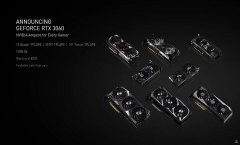 NVIDIA i přes nedostatek high-end grafických karet oznámila příchod grafické karty střední třídy RTX 3060. Díky tomu si hráči budou moct užít ray-tracing či technologii DLSS za mnohem nižší cenovku. Specifikace hovoří o 13 shader TFLOPs, 25 RT-TFLOPs a 12 GB GDDR6 RAM.
