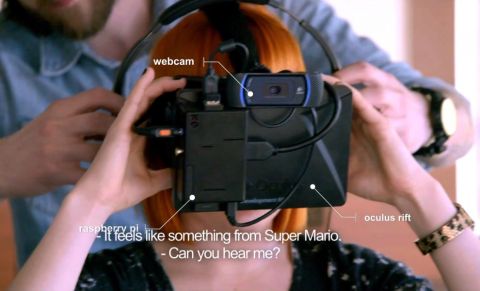 Přímo na headset je nainstalována kamera, která ihned posílá obraz do Riftu, ovšem s nastaveným zpožděním, které může činit až tři sekundy. Herci pak logicky nejsou schopni vykonávat ani ty nejjednodušší činnosti, takže nekontrolovatelně pobíhají po tělocvičně během aerobiku, nezahrají si stolní tenis, ani se nenají.